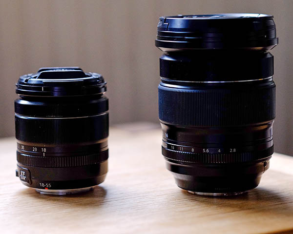 Image: 16-55 Mounted on X-T1 with battery grip. 18-55 alongside for comparison