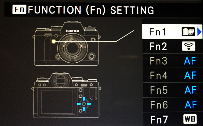 FN Button Settings: Film Simulation. Direct Focus Point Control and WB.