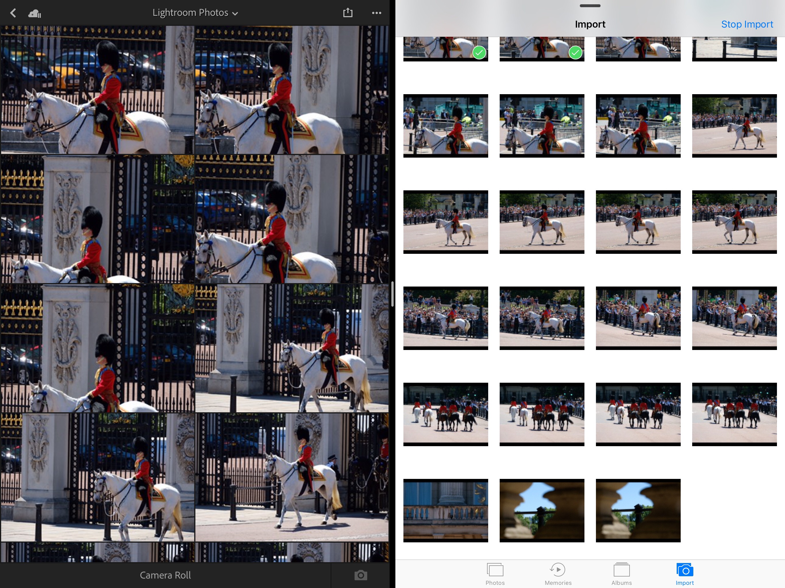 Switching to split view with the photos app running next to Lightroom as the images ingest from the card, they will be added too Lightroom at the same time (see you can multi-task on an iPad).