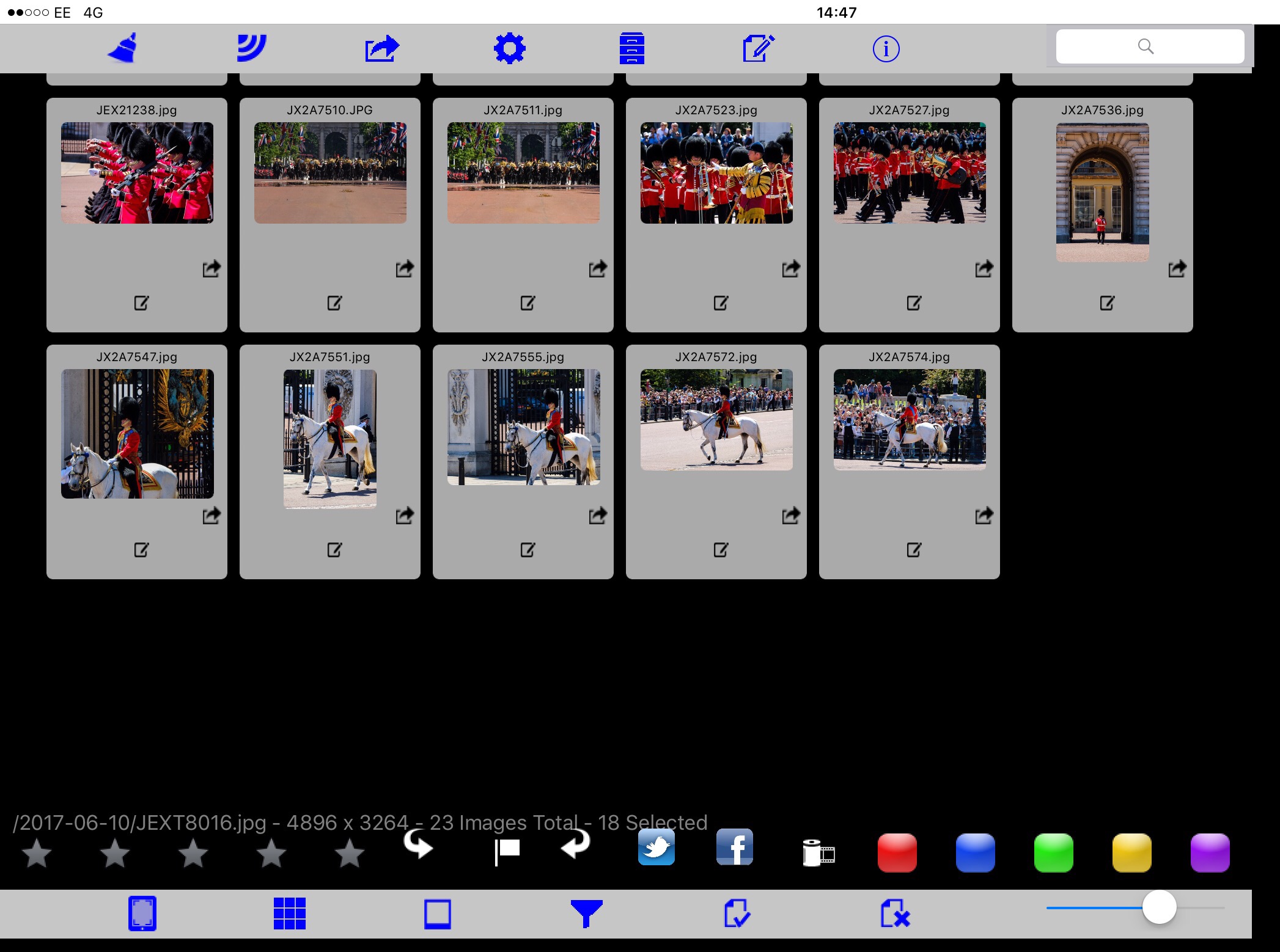 Once done I select the annotated images (hold to select a batch, double finger tap to add single images to the selection) and export using the FTP panel, resizing, renaming and saving the images in relevant folders as they are transmitted. Each image that is exported has a small icon on its lower right (in grid view).