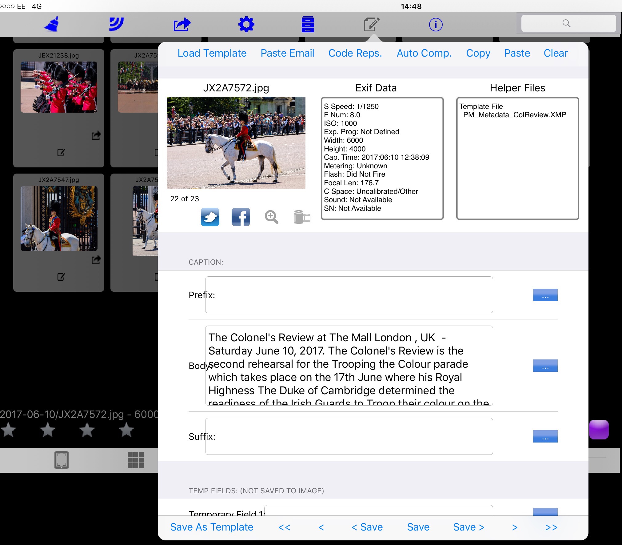 Comparing the captioning between PicturePro and Photomechanic the main loss again is batch processing. In PicturePro I do have to check and paste the metadata into every single image but this does have the advantage of ensuring I think about every caption.  At the time of writing PicturePro doses have one or two issues. It will crash every now and then but with this workflow I do not lose any work – its more just having to restart the software (which is almost instantaneous). PicturePro also has image editing which I have used in the past for small batches when I need to be very fast but a bug affecting only the iPad Pro means I am waiting on a software update before I can do this again.