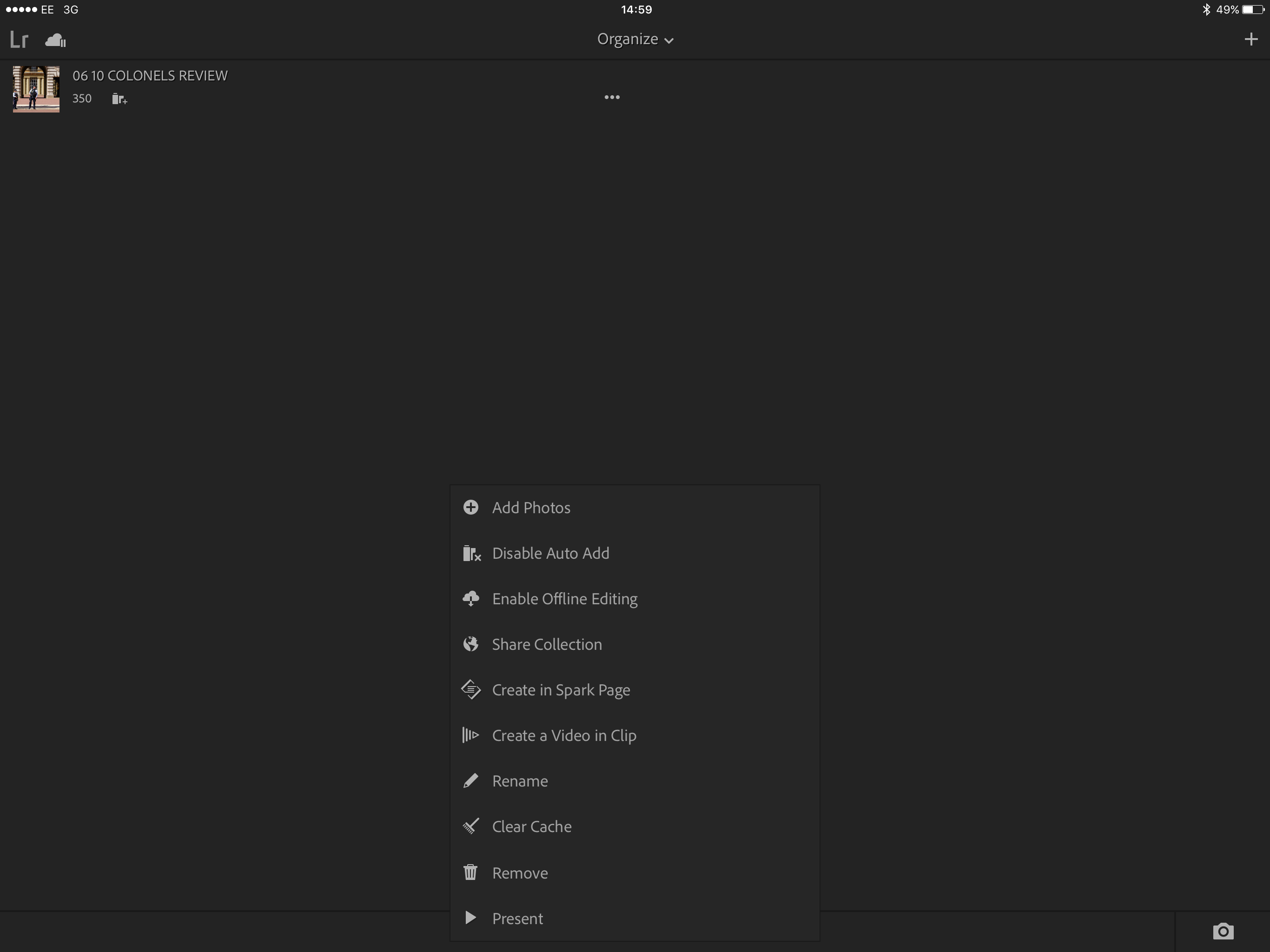 Mobile data: Ensure “sync on mobile data” is turned off.  (Tethering to a phone brings a whole different set of issues as you really do not want LR to try and synchronise all images until back at base).  An iPad on its own 4G connection is a real advantage here and simplifies the sending process.
