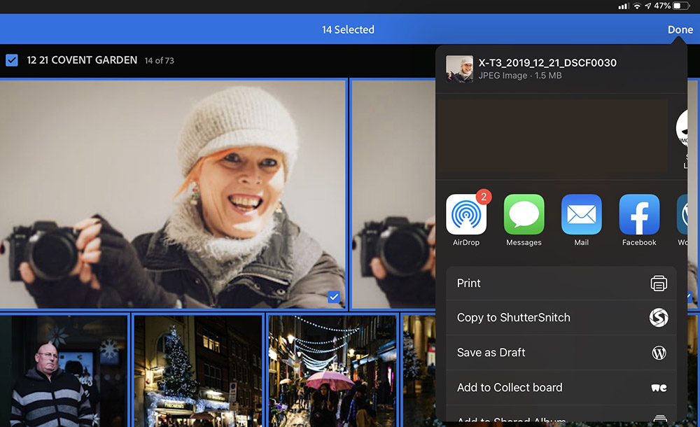 Another big step forward is the share to now enables a direct export to a shuttersnitch collection.
