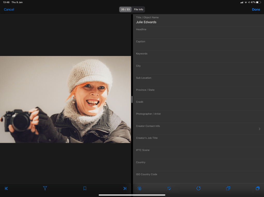 Which brings me to a question – I don’t do much live news but I would like to be able to occasionally upload to Alamy live news when out and about. As you know this requires adding a headline. I figured using the Title field might work but it is not transferring over to Lightroom desktop Headline field. So is using an intermediate like Shuttersnitch is the only way to go? I haven’t got Shuttersnitch at the moment and it appears to be subscription only on the App Store so I am a bit reluctant to invest in it as I may not use it very much. Is there an alternative or is Shuttersnitch the way to go then? Thanks