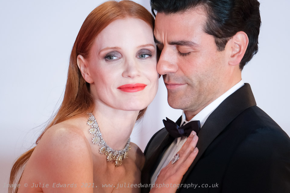 Jessica Chastain and Oscar Isaac poses on the red carpet for SCENES FROM A MARRIAGE during the 78th Venice International Film Festival on Saturday 4 September 2021 at The Palazzo del Cinema, Lido di Venezia, Venice. . Picture by Julie Edwards.