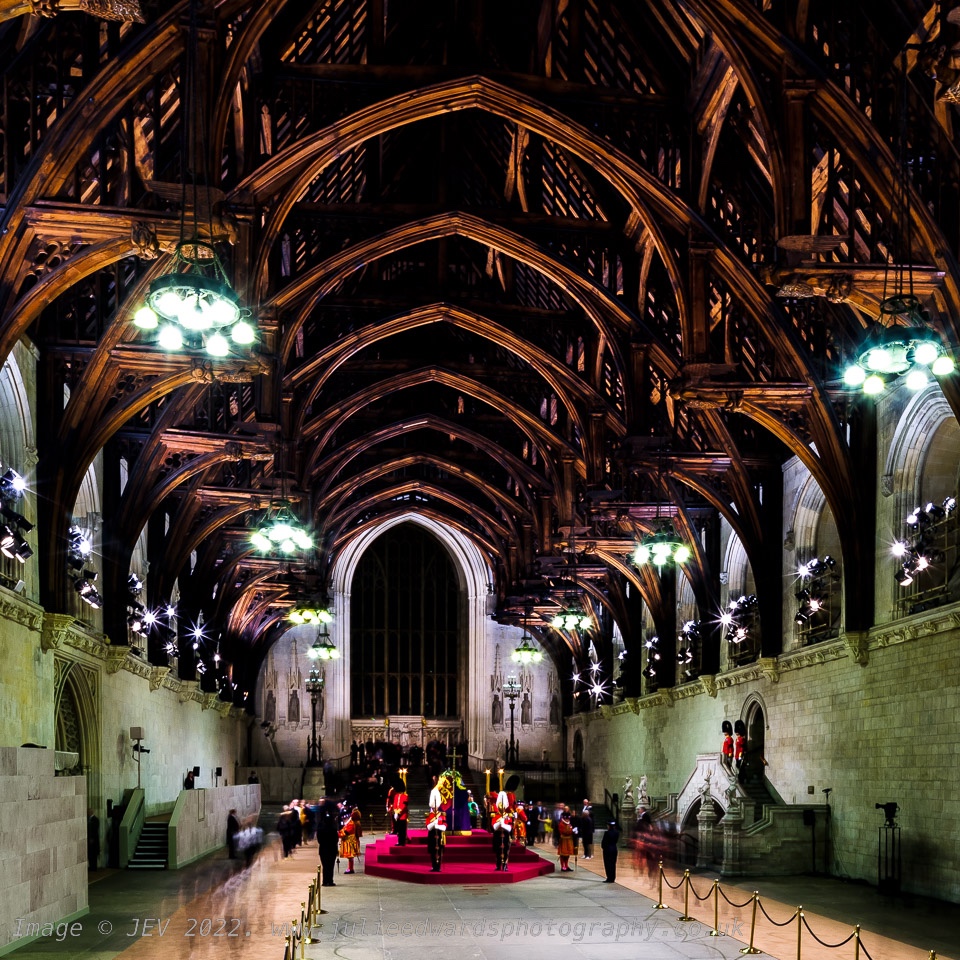 After filing my images and managing to get a dinner with friends in Soho, I headed to Westminster Hall where I had a 30 minute slot to photograph the late Queen laying in state at 21:30.