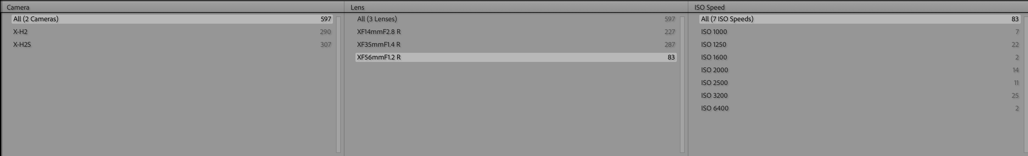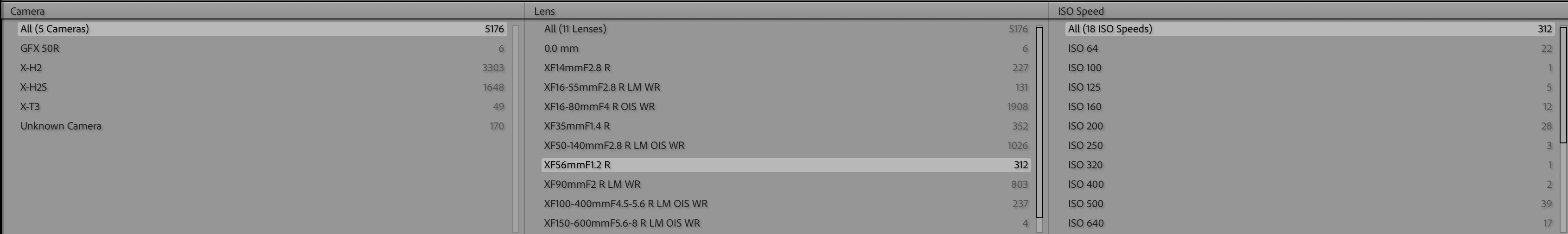 This shows the number of images on each of the cameras I have delivered in 2024 so far (It is to be expected that the H2s image count is far higher as I have owned it months longer).