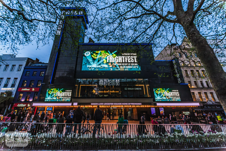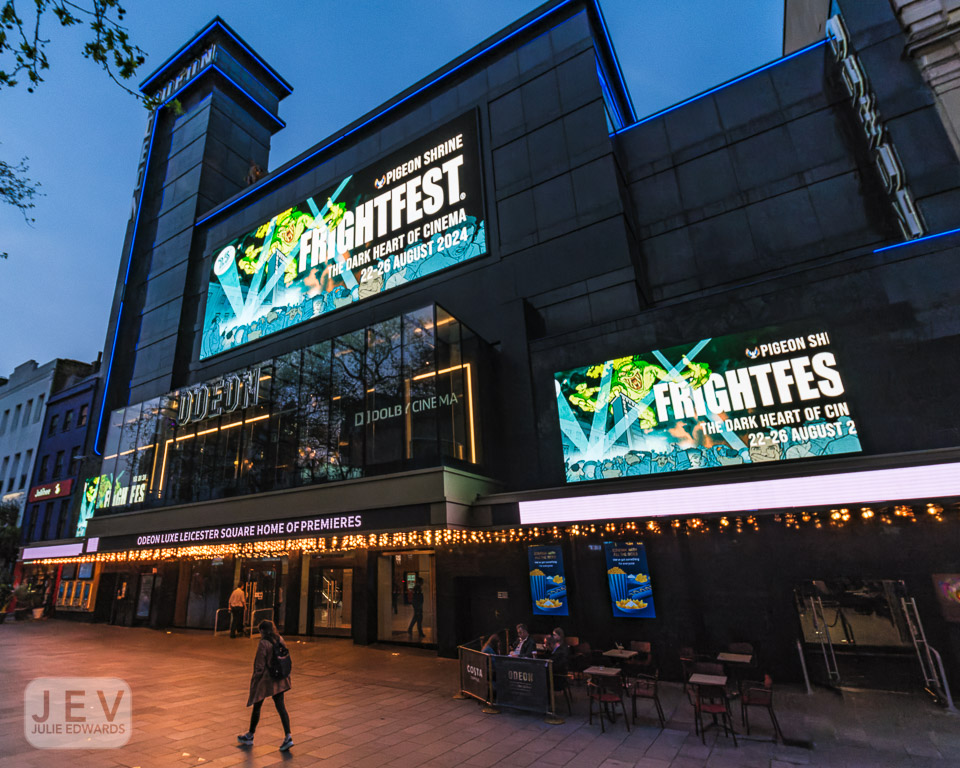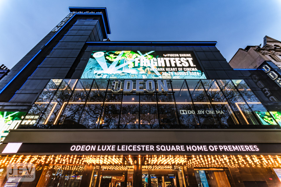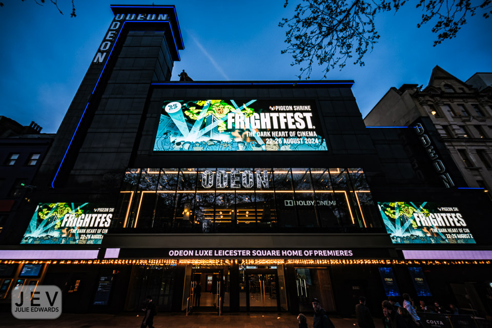 “25th Frightfest Monster Graphics seen on Friday 12 April 2024 on the ODEON Luxe Leicester Square, London. Pigeon Shrine FrightFest 2024 is the 25th Frightfest and this anniversary year is being held at the “Home of Premieres” in Leicester Square having moved from the Cineworld.”