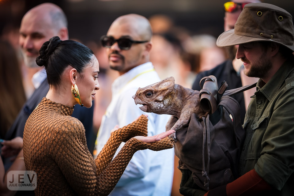 The first premiere was the World Premiere Of Jurassic World Rebirth and the first subject was Audrina Miranda with a small dinosaur on her shoulder.