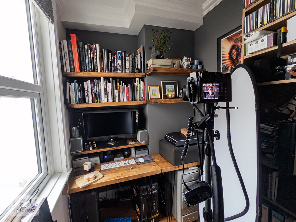 Instead of going back to the flash and modifier, the plan here was to stick with the natural light (as it was actually during the morning), using a (smaller than yesterday) reflector to bounce the light back from the window to fill in the shadow.