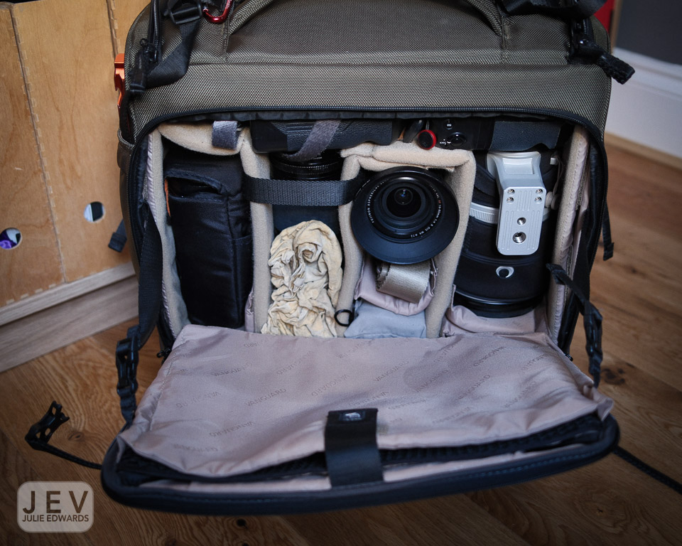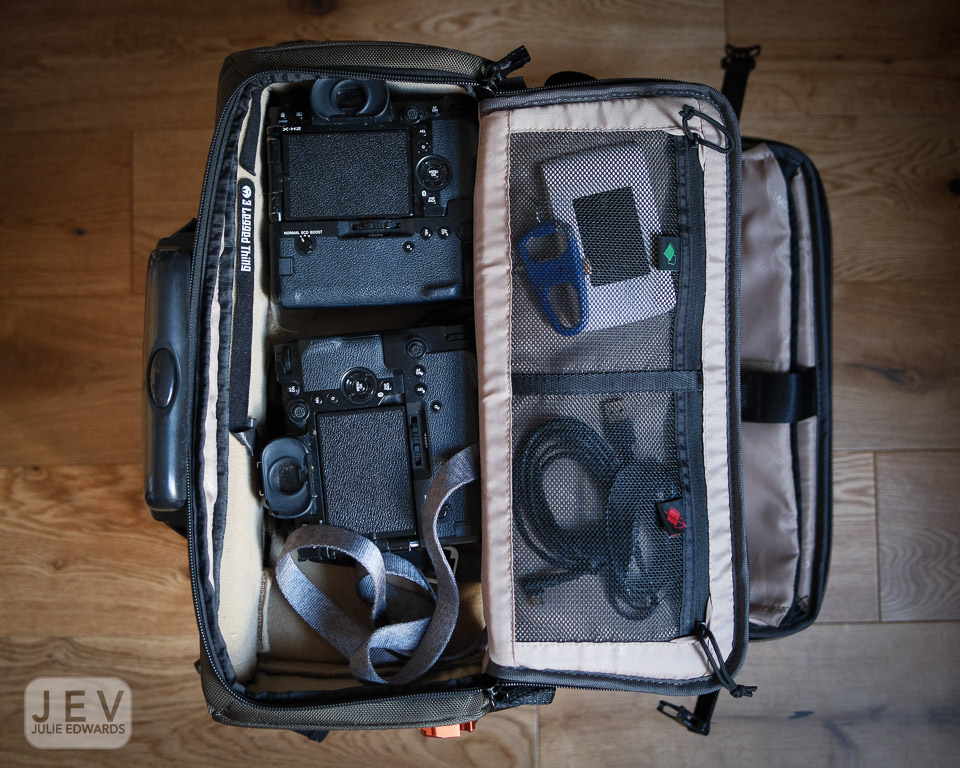 It carries my premiere kit of the two X-H bodies along with the 200/F2 , 50-140 and 16-80 along with a flashgun, associated bits and pieces plus laptop.