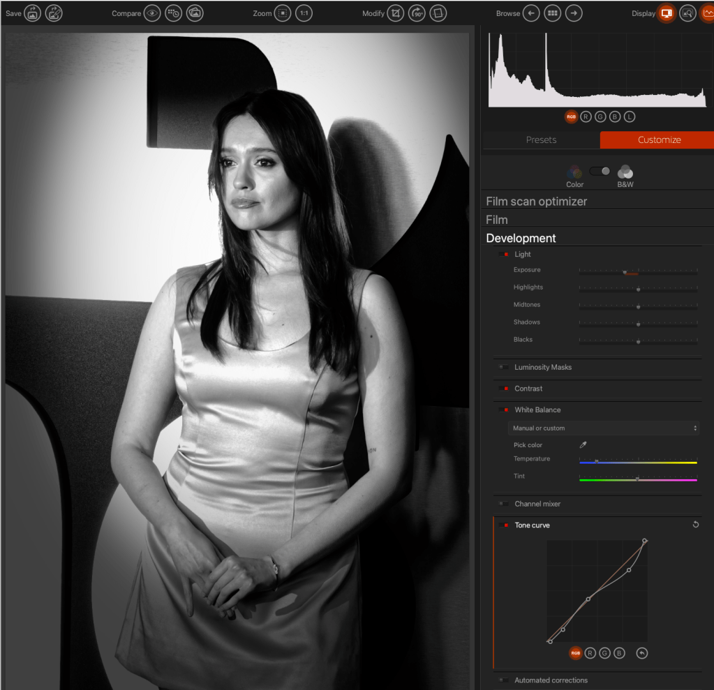 Once complete, I could run through the folder, image by image, applying my custom presets and tweaking before exporting the Monochrome JPGs to another folder.